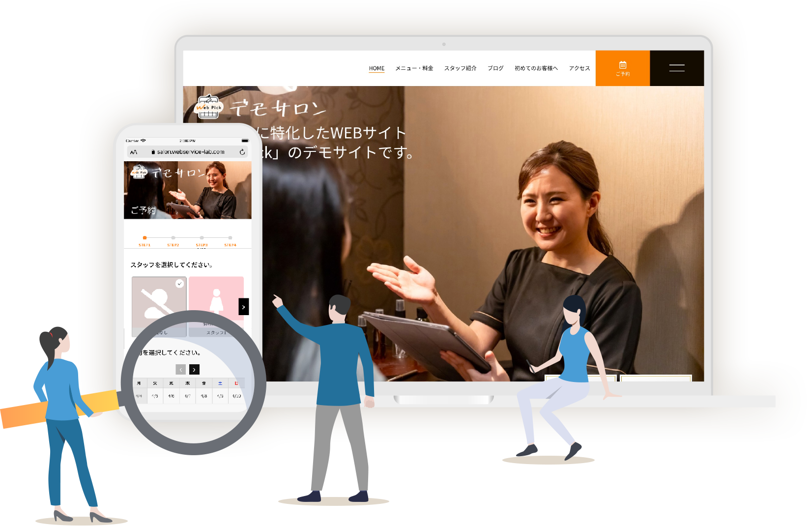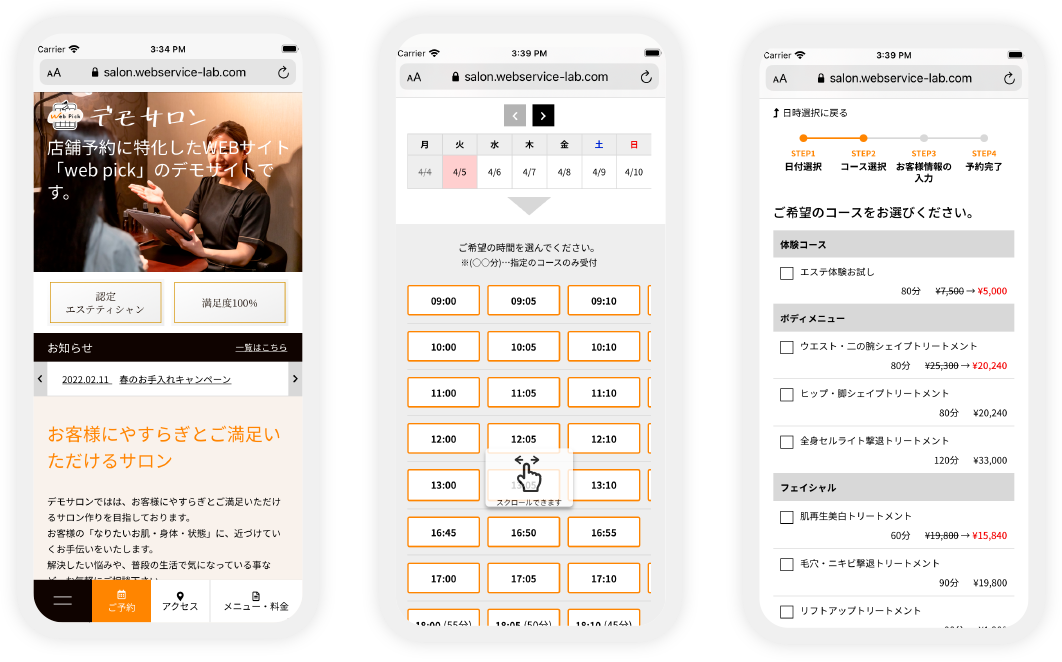 Web PickのWEBサイトは、ひと目で分かりやすいデザインと簡単な予約フォームで予約をとりこぼさない仕組みになっています。